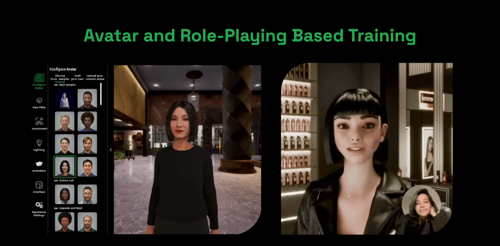 Spin up a face-to-face session with a lifelike trainer that sees you (vision optional), speaks naturally, and role-plays scenarios with instant coaching and rubric-based feedback.