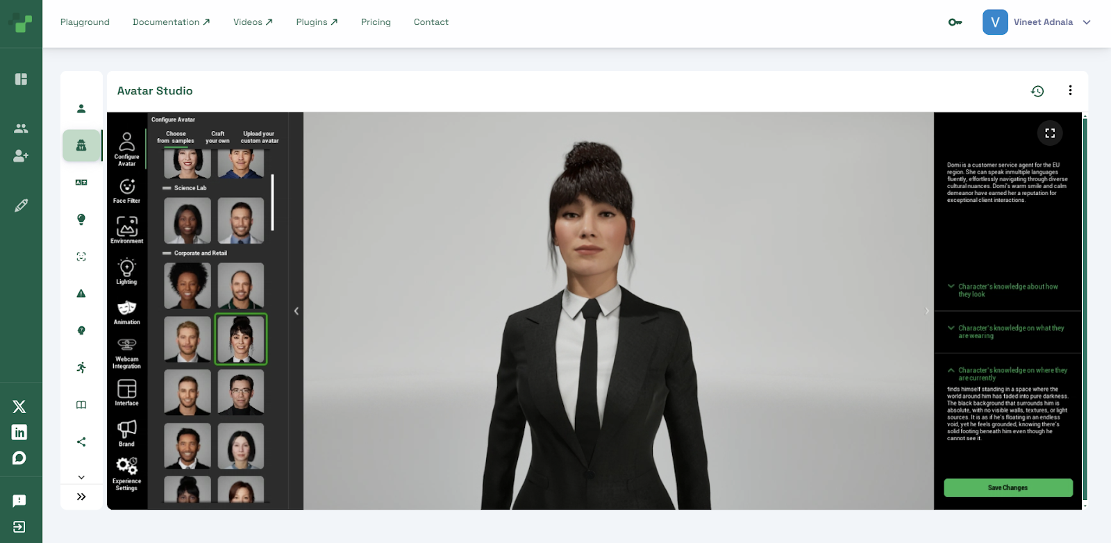 WebXR‑enabled for immersive delivery on devices like Meta Quest; also supports Mixed Reality passthrough so agents appear in physical spaces.