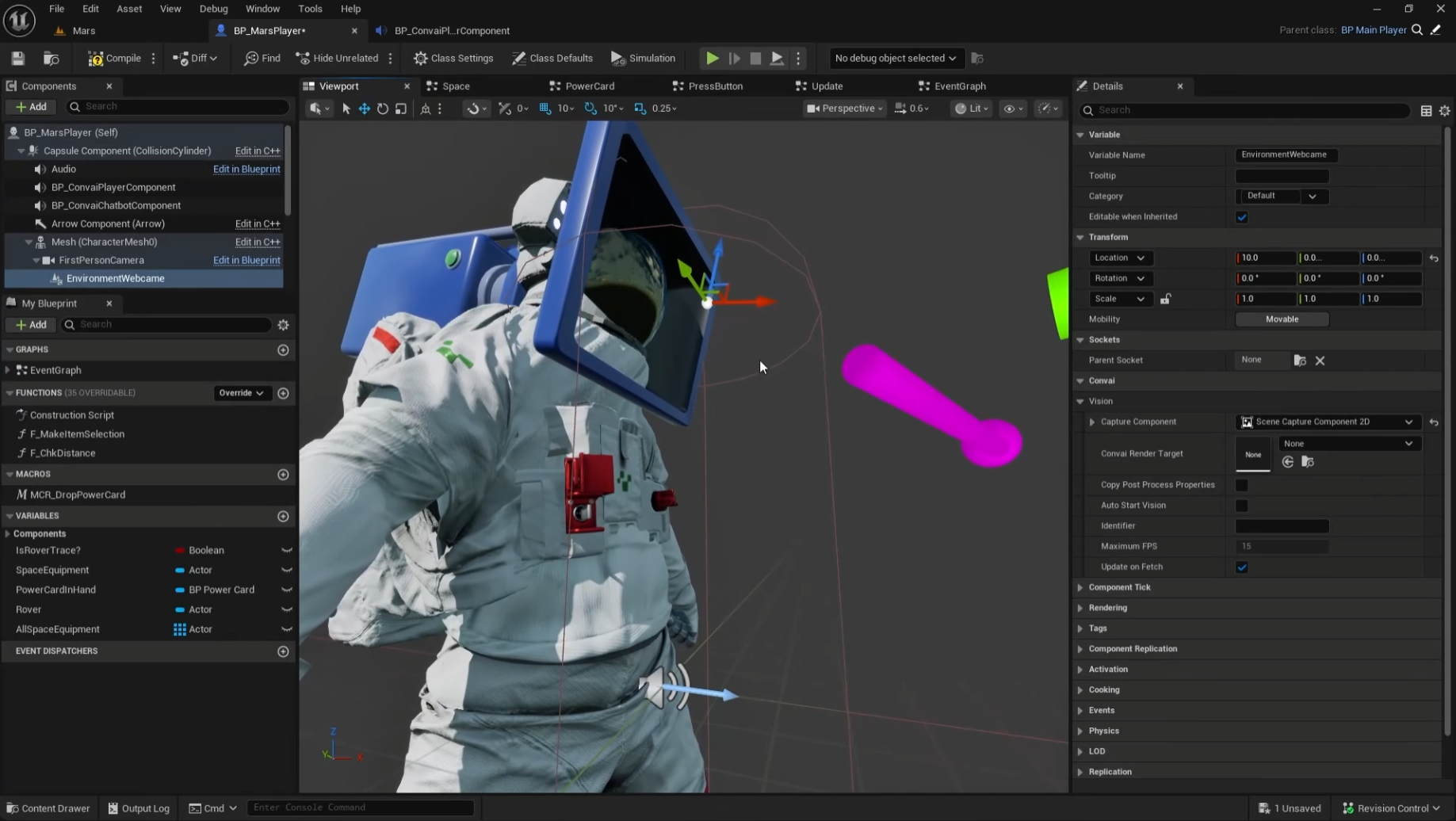 2. Go back to your Player Blueprint → select EnvironmentWebcam.