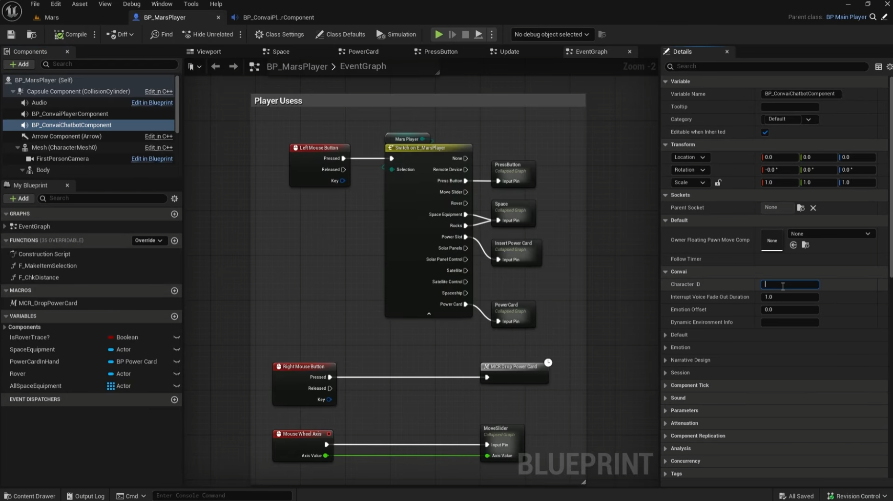Technically, we are adding Convai components directly to the Player Blueprint.